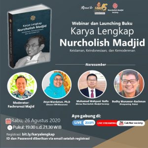 Rabu, 26 Agustus 2020, pukul 19.00-21.30 WIB, Nurcholish Madjid Society (NCMS) menggelar Peluncuran Karya Lengkap ini sebagai apresiasi terhadap pemikiran Sang Guru. Budhy Munawar-Rachman, penyunting, Muhamad Wahyuni Nafis, Ketua NCMS, dan Atun Wardatun, pengajar UIN Mataram, akan tampil sebagai pembahas buku ini.