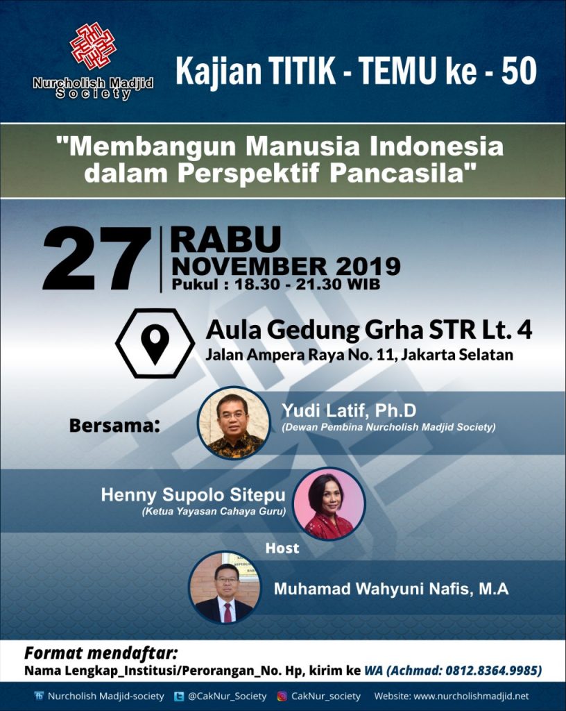 Kajian TITIK TEMU ke-50 “Membangun Manusia Indonesia dalam Perspektif Pancasila” November 19, 2019 No comments yet Agenda ← Prev Post Next Post → Share